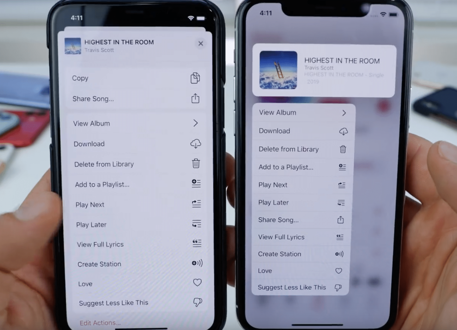 - Nuova interfaccia Haptic Touch su un brano musicale, all’interno dell’app Musica;