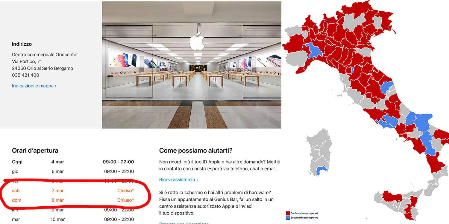Secondo quanto riportato dalla fonte di oggi, Apple avrebbe attualmente chiuso diversi Apple Store in tutta Italia a causa del coronavirus.