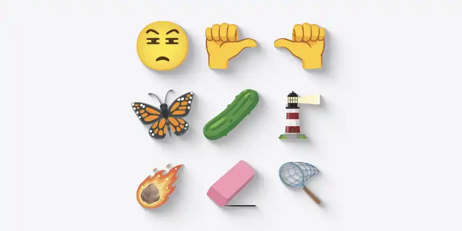 Tra le novità di iOS 27 spiccano un cetriolino molto richiesto, una farfalla monarca e una faccina che sembra non fidarsi troppo di quello che ha appena letto.